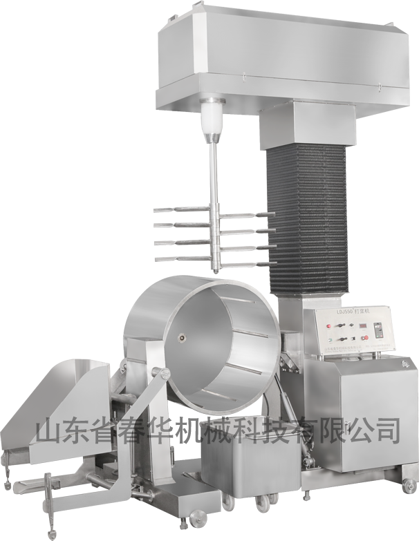 750立式打浆机适用于各种肉、鱼类浆料的混合搅拌及拍打(特别为中高档产品)的主要打浆设备,使浆料和辅料得到充分搅拌及肉纤维蛋白的提炼,所产生肉浆比高速类打的肉浆富有口感,不同普遍效果,工作稳定,产量高质量好,升温低,其工作原理是调速使用先慢揉将肉类抱团拉丝,慢慢加工成泥浆后无级变速拍打,使肉类纤维中发挥最大的吸水量和重组织性,所生产肉丸制品等松脆有弹性,能浮于水面,蒸煮不裂开,火锅食材极佳。