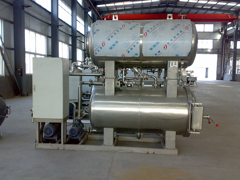 包括锅身、锅盖、弯臂装置、安全连锁装置、轨道、密封圈、蒸汽、喷管、冷却水管、管道、保压装置及闸阀等。气垫密封式杀菌锅的密封装置采用国内 技术配置,整机设计合理,运行安全可靠,结构紧凑,具有操作容易,维修方便、安装简单等特点。保压采用自动控制装置,当压力超限时可以自动进行调节,以保证容器在允许范围内正常工作。