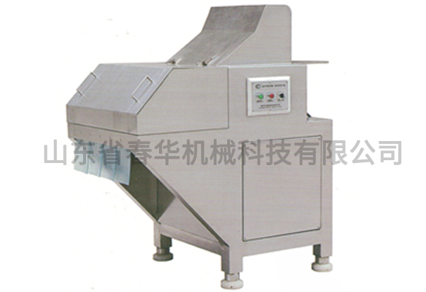 还有一种是将聚合物带条切成颗粒。这就需要一个特殊的切片机,这种切片机由导条板、喂入辊、加压辊、旋转刀盘组成。工作原理是:利用刀盘由无级变速器传动,喂入辊由刀盘通过一组变换齿轮传动,而刀盘按切粒尺寸装有多把刀片。可以自行调换变换齿轮可改变切断长度和无级变速器可改变带条的惟入速度。